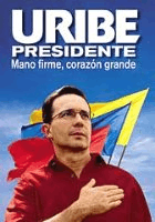 Álvaro Uribe's Presidential campaign poster. The slogan reads "Firm hand, big heart."