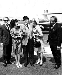 Åke Lindman (left) with Pirkko Mannola, Palmer Thompson, Mrs. Laihanen and Veikko Laihanen in 1964, when Thompson arrived to Finland to shoot Make Like a Thief.