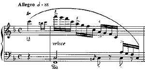 Étude Op. 10, No. 8 in F major is a technical study composed by Frédéric Chopin. It has been nicknamed the "Sunshine" étude. This work follows on from No.7 as being primarily another work concerned with counterpoint. In this case, however, the principal melody is in the left hand, the secondary being embedded in the arpeggios of the right hand. As with many of the études, the work is divided into three sections – bars 1-28, 29-60 and 61-95.