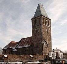 Buildings of interest include the fortified church of Saint Catherine, which dates to at least 1257, and has been rebuilt on several occasions, including in 1720 and after the Second World War. The church contains a picture of the Madonna of Częstochowa, and is considered a Marian shrine.