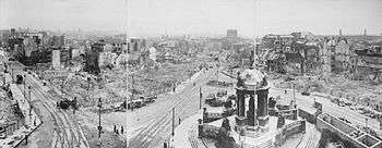 By late April 1945, a number of AA units were deemed surplus to requirements.[50] The regiment was ordered to concentrate at Hoogerheide on 23 April and come under the command of 76th AA Bde, which was handling unit disbandments and conversions to other roles. 103rd HAA Rgt was converted into a driver training unit, for which it was joined by 64th HAA Rgt's REME workshop. The first intake of potential drivers arrived just before VE Day. The regiment passed to 50th AA Bde shortly afterwards.[44][51]