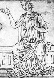 Costume during the thirteenth century in Europe was very simple for both men and women, and quite uniform across the continent. Male and female clothing were relatively similar, and changed very slowly, if at all. Most clothing, especially outside the wealthier classes, remained little changed from three or four centuries earlier.[1] The century saw great progress in the dyeing and working of wool, which was by far the most important material for outerwear. For the rich, colour and rare fabrics such as silk from the silkworm was very important. Blue was introduced and became very fashionable, being adopted by the Kings of France as their heraldic colour.[2]
