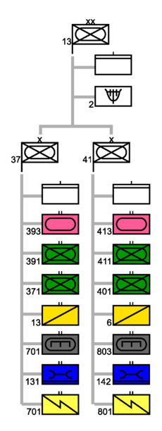 The 13th Panzergrenadier Division was disbanded on June 28, 2013, as part of a restructuring of the German armed forces. The division's units had previously been transferred to 1st Panzer Division and the Airmobile Operations Division. 13th Panzergrenadier Division was succeeded by the Army Training Command (Ausbildungskommando Heer).[2]