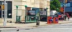 145th Street, the next station south, was the original terminal.[5][6] On its first day in service, the station was used to allow passengers to get to a football game at the Polo Grounds.[7] After this, 157th Street became the terminal for trains not going via the Lenox Avenue Line. The terminal of 157th Street had facilities for switching trains, relieving congestion at 96th Street. On March 12, 1906, the IRT was extended from 157th Street to 221st Street.[8] Shuttle trains served the new extension terminating at 157th Street, meaning that passengers south of 157th Street wanting to go to stations on the extension had to transfer at 157th Street.[9] On May 30, 1906, express trains began running through to 221st Street eliminating the need to transfer at this station.[10]