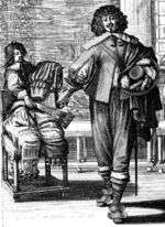 In Protestant and Catholic countries, attempts were made to simplify and reform the extravagances of dress. Louis XIII of France issued sumptuary laws in 1629 and 1633 that prohibited lace, gold trim and lavish embroidery for all but the highest nobility and restricting puffs, slashes and bunches of ribbon.[11] The effects of this reform effort are depicted in a series of popular engravings by Abraham Bosse.[12]