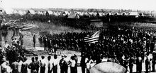 Chaplain leading prayers-69th New York Infantry Irish Brigade. Note the use of civilian hats by the men.