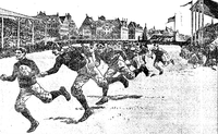 "Widman scurried out of the back of the mass of players with the ball under his arm and down the field with nothing in sight ahead of him except the goal posts. All the fast men of the Chicago team went in fast pursuit. It was a beautiful race down the field. Three Chicago men were close behind. But the blue-legged runner gained almost imperceptibly at times, and then barely held his own. He could run as fast as his pursuers, and with his start was safe. If one or two of those Chicago players had made a dive for him perhaps he might have been stopped. One of them did try up near the goal, but missed him, tripping him slightly, but he rolled over the line. Michigan had another touchdown and the game, and the Western championship in its pocket."[30]