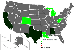 Number of bowl teams per state