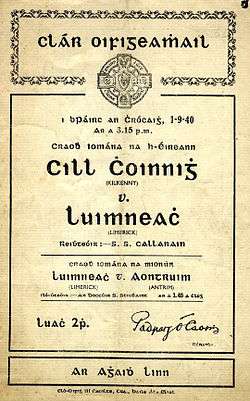 The 1940 All-Ireland Senior Hurling Championship final was a hurling match played at Croke Park on 1 September 1940 to determine the winners of the 1940 All-Ireland Senior Hurling Championship, a tournament organised by the Gaelic Athletic Association for the champions of the three hurling provinces of Ireland. It was the 53rd All-Ireland final. The match was contested by Kilkenny of Leinster and Limerick of Munster, with Limerick winning by 3-7 to 1-7.[1]