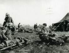The 194th held its captured ground until 26 March, when Field marshal Bernard Montgomery began moving his troops eastward to relieve the paratroopers. The next day, the 194th advanced on the German town of Lembeck, but encountered solid enemy resistance and were repulsed after I Company attempted 3 abortive frontal assaults.[8] The assaults were renewed on 28 March, and it was here that Technical Sergeant Clinton M. Hedrick, of I Co, earned the Medal of Honor. He repeatedly charged through heavy fire to attack German positions and alone followed a group of German soldiers when they retreated into a Schloss. When the Germans indicated that they wished to surrender, Hedrick and four other men entered the castle, only to be fired upon by a German self-propelled gun. Hedrick was fatally wounded, but successfully covered the withdrawal of his men with his BAR.[9]