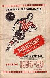 The 1954–55 Third Division South season marked Brentford's fall from the top-flight to the basement in just seven years.[1] It would be the Bees' first season in the Third Division South since 1932–33 and manager Bill Dodgin Sr. was given little budget to work with,[1] due to the £10,000 from the sale of Jimmy Bloomfield to Arsenal being spent on relieving the club's debts. Dodgin did not conduct a fire sale after Brentford's relegation and managed to keep his squad intact, with Millwall forward George Stobbart (arriving in exchange for Terry Ledgerton), forward Jeff Taylor and goalkeeper Sonny Feehan being the only players to arrive at Griffin Park. Ageing full back Fred Monk was released and goalkeeper Alf Jefferies transferred to Torquay United. The products of Alf Bew's youth team would be given more of a chance than in the previous Second Division seasons.[3]
