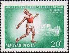 Men's discus throw at the 1966 European Athletics Championships on a Hungarian stamp