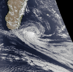 Tropical Cyclone Hyacinthe set several worldwide tropical cyclone rainfall records in Réunion in the Southwestern Indian Ocean, including a peak total of 5678 mm (223.5 inches).[4] For twelve days, Hyacinthe dropped torrential rainfall on Réunion; nearly all of the island received more than 1 m (3.3 ft) of precipitation. Over a 15‑day period from January 14 to January 28, 6,083 mm (239.5 in) of rainfall were recorded at Commerson's Crater, a volcano. The heaviest rainfall occurred through a process called orographic lift in the mountainous interior, leading to hundreds of landslides. Widespread floods washed out roads and isolated three villages. Hyacinthe caused heavy damage to crops and damaged or destroyed 2,000 houses. Losses from the storm totaled $167 million (1980 USD, 676 million francs), and 25 people were killed.