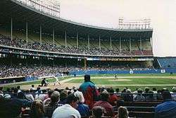The Brewers playing against the Cleveland Indians during a 1993 away game at Cleveland Municipal Stadium.