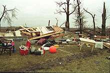 - 1 2 3 Stachura, Sea (March 28, 2008). "Ten years after devastating tornadoes, communities thriving". Minnesota Public Radio. Archived from the original on May 22, 2008. Retrieved May 15, 2008.