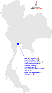 Locations of the Thai Premier League 2002–03 teams