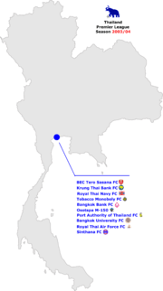 The 2003-04 Thai Premier League had 10 teams. Two clubs would be relegated and 2 teams promoted from Thailand Division 1 League.The team that finished in 8th position would play in a relegation play-off.