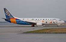Olympic Airlines Boeing 737-484 decorated with the colours of the 2004 Olympics
