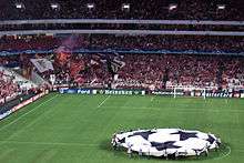 Benfica first competitive game of the season was the third qualifying round of the Champions League.[38] Before the match, Santos expressed the importance of reaching the group stage: "More important than the formation used is to fulfil our purpose: take part in the group stage of the competition."[39] On 8 August, Benfica visited the Ernst-Happel-Stadion to play Austria Wien.[38] Benfica scored first with a back-heeled goal from Nuno Gomes in the 16th minute, while Austria equalized through Jocelyn Blanchard in the 36th minute. The match resulted in a draw and Benfica gained a decisive advantage for the second leg.[40] On 22 August, Benfica hosted Austria Wien for the second leg.[38] The opening goal came from Rui Costa, with further Benfica goals scored by Nuno Gomes and Petit.[38] Benfica had joined their rivals Porto and Sporting in the 2006–07 Champions League, marking the first time three Portuguese teams were present in the group stage.[41] On 24 August, Benfica took part in the Champions League draw; they were drawn with Manchester United, Celtic and F.C. Copenhagen.[42] It was second time in a row Benfica played with Manchester United in the group stage after eliminating them in 2005–06.[42] Three days later, Benfica were due to meet Belenenses for the opening game of the Primeira Liga.[43] However, because of the "Mateus Affair," the game was uncertain to occur; Santos expressed hopes for the quick resolution of the case, adding that it was bad for Portuguese football and that the uncertainty caused his players to lose focus.[44] Two days before the match, the Portuguese Professional Football League announced that the game was postponed until the Portuguese Football Federation decided the outcome of the affair.[45]