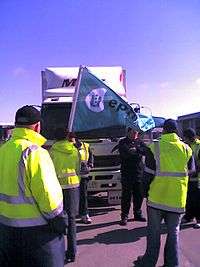 - ↑ "Ten picketers arrested after truck tyres are punctured". The New Zealand Herald. 8 September 2006. Retrieved 4 October 2006.