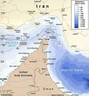 To travel through the Strait of Hormuz, which at its narrowest is 21 nautical miles (39 km) wide, ships pass through the territorial waters of Iran and Oman under the transit passage provisions of the United Nations Convention on the Law of the Sea.[25] Neither Iran or the United States have ratified the convention,[26] but the United States accepts the traditional navigation rules as reflected in the Convention.[27] Iran has stated that it reserves "the right to require prior authorization for warships to exercise the right of innocent passage through its territorial sea."[28] It is unclear if the incident happened in the territorial waters of Iran or Oman.