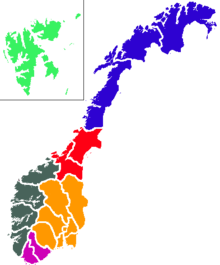 The Norwegian spiral anomaly of 2009[1] appeared in the night sky over Norway[2] on 9 December 2009. It was visible from, and photographed from, northern Norway and Sweden. The spiral consisted of a blue beam of light with a greyish spiral emanating from one end of it. The light could be seen in all of Trøndelag to the south (the two red counties on the map to the right) and all across the three northern counties which compose Northern Norway,[3] as well as from Northern Sweden[1] and it lasted for 10 minutes.[3] According to sources, it looked like a blue light coming from behind a mountain, stopping in mid-air, and starting to spiral outwards.[4][5] A similar, though less spectacular event had also occurred in Norway the month before.[6] Both events had the expected visual features of failed flights of Russian SLBM RSM-56 Bulava missiles,[7][8] and the Russian Defense Ministry acknowledged shortly after that such an event had taken place on 9 December.[9]