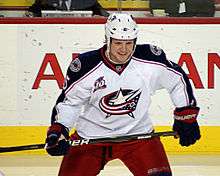 Two weeks prior to the NHL trade deadline, Columbus announced that unlike earlier in the season, they would listen to trade proposals involving Rick Nash, though they were not actively shopping him. Howson stated that the team was open to all options for improving the team, including trading Nash. Speculation was that in return for Nash the Blue Jackets would ask for a "combination of young, proven players, high-end prospects and draft picks."[41][42] Leading up to the trade deadline, the Blue Jackets dealt Antoine Vermette to the Phoenix Coyotes for two draft picks and goaltender Curtis McElhinney. Despite being injured at the time, the acquisition of McElhinney was believed to give Columbus the flexibility to trade Curtis Sanford.[43] The following day, on February 23, Columbus traded Jeff Carter to the Kings. In the deal, Columbus acquired defenseman Jack Johnson and a first-round draft pick; the team was given the choice of taking the pick in either 2012 or 2013.[44] At the deadline, Columbus was unable to come to terms on a deal involving Nash, but they did make one more move;[45] they sent center Samuel Pahlsson to the Vancouver Canucks in exchange for two fourth-round draft picks and minor league defenseman Taylor Ellington.[46] Following the trade deadline, Howson announced that the team had attempted to trade Nash at the player's request. Nash stated that he had requested the trade after being informed that the franchise was going into another rebuilding phase. He further noted that he felt that he "could be a huge part of that towards bringing assets in," and in his view "it was the best thing for the team, the organization, and personally for [his] career."[47] After the personnel changes, the Blue Jackets closed out the month with a three-game losing streak.