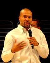 Bryant Gumbel on his HBO Real Sports show in October likened Stern's role in the lockout to a "modern plantation overseer, treating NBA men as if they were his boys ... keeping the hired hands in their place".[74] The NBA owners are predominantly white, while the players are mostly black.[75] ESPN noted that William C. Rhoden in his book $40 Million Slaves had earlier dealt with the topic of players as "slaves" in spite of earning millions of dollars.[76] Stern dismissed Gumbel's comments as "an occupational hazard" of being the NBA commissioner.[77] In early November, NBPA attorney Jeff Kessler criticized the owners' "take it or leave it" bargaining approach: "instead of treating the players like partners, they're treating them like plantation workers."[78] Hall of Famer Magic Johnson called the comments "ridiculous" and defended Stern's record of promoting blacks.[79] ESPN The Magazine said that the NBPA did not condone Kessler's statements, and they had intentionally avoided getting involved with Gumbel's earlier remarks. Kessler later apologized for his comments.[80]