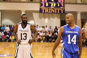 Many players opted to stay in the United States instead. The New York Times speculated that many Americans would have found it hard to leave and change their lifestyle.[98] Some played in local pick-up games,[103] while others ranging from stars like Kevin Durant to players like Dorell Wright played in the more organized exhibition tournaments such as the Drew League in Los Angeles, the Melo League located in Baltimore and the Goodman League in Washington, D.C.[104] An exhibition game between two of the leagues was played on August 20, 2011, with the Goodman League defeating the Drew League, 135–134.[105][106] Drew commissioner Dino Smiley said such pro–am games during the NBA off-season were not new, but "the lockout has taken these games to a new level".[107] A tournament of NBA-only players was held in September in Las Vegas, Nevada, featuring eight teams with seven to eight players each.[108] Named the Impact Basketball Competitive Training Series, the league was dubbed by The New York Times as the "Lockout League".[109]