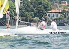 The Northern part of Lake Como was reportedly a thermic wind venue. In this time of year the normal situation is that at about 13:00 the Swiss mountains are heated up and a Southern wind hits the racing areas with about 10 to 14 knots. As result of this no races were scheduled in the morning. Unfortunately during the event the temperature in Switzerland were low. Also was the thermal South breeze battling with the gradient wind from the North. As result the actual wind did not came above the 8 knots during the races and was instable at times.