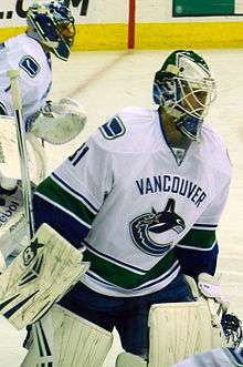 The Canucks had two competitors for the back-up goaltender position - Eddie Läck and Joacim Eriksson.[31] Läck had been seen as the heir apparent for the back-up role, but following a season-ending injury after playing only 12 games in the AHL, his future was called into question.[32] Eriksson was signed to a two-year, two-way, entry level contract with the Canucks in the off-season after helping Skellefteå AIK to the Swedish Hockey League championship.[33][34] Though neither player had any NHL experience, Läck was seen as the front runner because of his one-way contract, which paid him the same at the NHL or AHL level.[35]