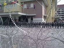 Suthep, representing the newly created People's Democratic Reform Committee (PDRC; literal translation of the Thai name: "People's Committee for Complete Democracy with the King as Head of State"[76]), had vowed to further escalate the protests on 1 December in a "people's coup" attempt. That day protesters tried to force their way into Government House and the Metropolitan Police headquarters, but were halted by police using barricades, tear gas, and water cannons. About 2,700 unarmed soldiers were called in to support the police. That afternoon, Yingluck cancelled planned media interviews and moved to an undisclosed location when the building she was in was surrounded by protesters.[77][78] Protesters also entered several television stations, including the Thai Public Broadcasting Service, forcing them to broadcast a public address by Suthep,[79][80] an act condemned by three media organisations.[81] In a televised address, Suthep said that protesters had occupied twelve government buildings, but this claim was denied by the national security chief Paradorn Pattanathabutr.[82] Suthep later unilaterally announced that he had met with Prime Minister Yingluck to deliver an ultimatum "to return power to people" within two days. He reaffirmed his stance that Yingluck's resignation or the dissolution of the House of Representatives was not acceptable, and repeated his calls to replace elected officials with an unelected "People's Council" that would choose leaders.[83] Yingluck had rejected the demands on the basis that suspending the democratic process would be unconstitutional.[84] On 3 December 2013, the police removed barricades and allowed protesters to enter the site, reducing tensions to allow both sides to celebrate King Bhumibol Adulyadej's birthday.