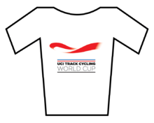 Leaders of each type of track cycling event, contested at the UCI Track World cup had the right to wear the leaders jersey, shown here.
