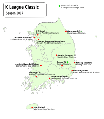 Locations of the 2017 K League Classic teams