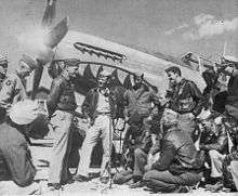 Before the 23d Fighter Group returned to the United States in December 1945, it was credited with destroying 621 enemy planes in air combat, plus 320 more on the ground; with sinking more than 131,000 tons of enemy shipping and damaging another 250,000 tons; and with causing an estimated enemy troop loss of more than 20,000.[3] These statistics were compiled through a total of more than 24,000 combat sorties, requiring more than 53,000 flying hours, and at a cost of 110 aircraft lost in aerial combat, 90 shot down by surface defenses, and 28 bombed while on the ground.[3] Thirty-two pilots of the group achieved ace status by shooting down five or more enemy aircraft.[3]