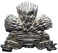 - The cap badge is a spray of three protea flowers, bound by a ribbon bearing the initials and motto.