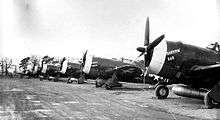 The squadron moved to England in October 1943, where it became part of VIII Fighter Command. It entered combat in mid-December 1943, using the callsign "Wheeler"[2] supported the invasion of Normandy during June 1944 by patrolling the English Channel, escorting bombardment formations to the French coast, and dive-bombing and strafing bridges, locomotives, and rail lines near the battle area. After D-Day, engaged chiefly in escorting bombers to oil refineries, marshalling yards, and other targets in such cities as Ludwigshafen, Stuttgart, Frankfurt, Berlin, Merseburg, and Brux. Continued combat operations until the German capitulation in May 1945. The unit returned to the United States and was inactivated in November 1945.[1]