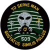 In addition to its official insignia, during B-2 stealth bomber test flights, some members of the 509th Bomb Wing procured an unofficial insignia involving an alien, the legend To Serve Man (referring to a famous Twilight Zone episode), and the inscription Gustatus Similis Pullus (Dog Latin for "Tastes like chicken").[2] A second variation carried the term "Classified Test Flight" instead of the Twilight Zone reference, and both harkened to the 509th's connection to the "Roswell UFO incident".[3]