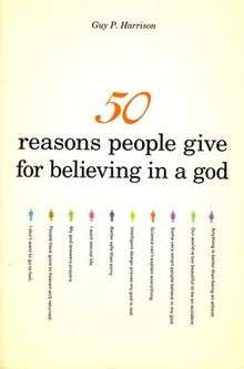 50 reasons people give for believing in a god is a 2008 book by journalist Guy P. Harrison. It was his first book. Drawing on his research and life experience the book lists fifty common reasons that believers across the world give for believing in a god and examines each of them. One major emphasis is that the reasons believers give are different to the reasons given in theology.[1] Harrison also takes a calm and empathetic attitude towards people who believe, in contrast to some other atheist works.[2] He describes Richard Dawkins' use of the term "faith heads" to describe believers as "a lot like an insult" and writes that it is "counterproductive."[3]