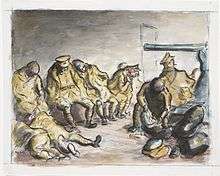 On 1 September 1939 the artist Edward Ardizzone was mobilised at Putney with 54th HAA Regiment. By December he was a Bombardier with F Troop of 162 Bty. He was commissioned as a 2nd Lieutenant on 23 December, leaving the artillery and becoming an official war artist in February 1940.[24]