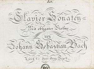 - Clavier Sonaten mit obligater Violine / von Johann Sebastian Bach. Zürich: Bëy Hans Gëorg Nägeli, Loeb Music Library, Harvard University