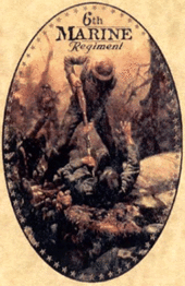 The 6th Marine Regiment was first organized at Marine Corps Base Quantico, Virginia, on 11 July 1917 under the command of Medal of Honor holder Colonel Albertus W. Catlin.[1] The regiment included three battalions: the 1st (74th, 75th, 76th, and 95th Companies), the 2nd (78th, 79th, 80th, and 96th Companies), and the 3rd (82nd, 83rd, 84th, and 97th Companies). Virtually all of the senior officers and staff non-commissioned officers of the 6th Regiment were long-service professionals, while most junior officers and all privates were new enlistees. Although the new men were short on experience, they were long on education: Colonel Catlin estimated that 60% of them were college men.[2] Regimental increments arrived in France during late 1917 and early 1918. Upon arrival, the 6th Marine Regiment joined the 5th Marine Regiment and the 6th Machine Gun Battalion to form the 4th Brigade, U.S. 2nd Division (Regular), American Expeditionary Force. The early spring was devoted to training under French tutelage. The "Marine" Brigade[3] entered the trenches of the Toulon Sector near Verdun in March 1918, where it suffered its first combat casualties. The regiment had 33 men killed while in the trenches, most lost when the 74th Company billeting area was gassed on 13 April 1918.[4]