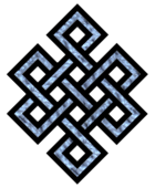 The interlaced version of the simplest form of the Endless knot symbol of Buddhism is topologically equivalent to the 74 knot (though it appears to have nine crossings), as is the interlaced version of the unicursal hexagram of occultism.[2] (However, the endless knot symbol has more complex forms not equivalent to 74, and both the endless knot and unicursal hexagram can appear in non-interlaced versions, in which case they are not knots at all.)