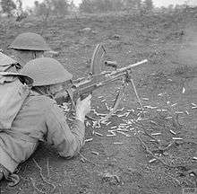 During the winter of 1942–43, the army overhauled the training of recruits. The 76th Division, along with the 48th Infantry and 77th Infantry divisions, was changed from a "Lower Establishment" unit to a "Reserve Division".[19][20] On 20 December, the division was renamed the 76th Infantry (Reserve) Division, becoming a training formation in the process.[1][19] These three divisions were supplemented by a fourth training formation, the 80th Infantry (Reserve) Division, which was raised on 1 January 1943.[21] The 76th Infantry (Reserve) Division was assigned to Eastern Command, and moved to Norwich.[18][22] Soldiers who had completed their corps training, were sent to these training divisions.[23][lower-alpha 2] The soldiers were given five weeks of additional training at the section, platoon and company level, before undertaking a final three-day exercise. Troops would then be ready to be sent overseas to join other formations.[23] Training was handled in this manner to relieve the "Higher Establishment" divisions from being milked for replacements for other units and to allow them to intensively train without the interruption of having to handle new recruits.[22] For example, the 9th Battalion, Dorsetshire Regiment provided recruits to other battalions within the regiment as well as the Royal Norfolk Regiment.[24] During this period, command of the division changed several times. On 21 December 1943, Ozanne was replaced by Major-General Colin Callander who in turn was replaced by Major-General John Edward Utterson-Kelso on 13 March 1944.[1]
