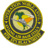 In early 1999, the 8th deployed F-117 and their crews to Aviano Air Base, Italy and Spangdahlem Air Base, Germany from 21 February – 1 July 1999, in support of Operation Allied Force, the NATO attempt to stop ethnic cleansing in Kosovo in the former nation of Yugoslavia. In the opening phase of the operation, aimed primarily at Yugoslavia's integrated air defense system, NATO air forces conducted more than 400 sorties. During the first two night attacks, allied air forces struck 90 targets throughout Yugoslavia and in Kosovo. F-117 Nighthawks from the 8th Expeditionary Fighter Squadron participated in air strikes against targets in the Balkans during NATO operations bravely trusting in their aircraft's low observable technology struck some of the most valuable and highly guarded targets in Serbia. The F-117s successfully penetrated the heavily defended areas, which conventional aircraft could not reach.[5]