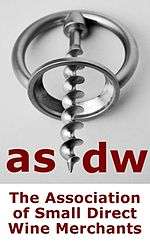 The Association of Small Direct Wine Merchants (ASDW) is a United Kingdom non-profit trade association that was founded in 2003 to assist United Kingdom small wine merchants.[1] ASDW typically aides importers, to support members in their fight against measures in the United Kingdom Licensing Act 2003. It has around 24 members. The ASDW is affiliated to the Wine and Spirit Trade Association and members of ASDW are also members of the WSTA. ASDW publishes GrapesTALK, an online free wine magazine.