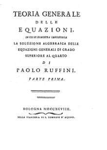 - ↑ Ruffini, Paolo (1799), Teoria generale delle equazioni, in cui si dimostra impossibile la soluzione algebraica delle equazioni generali di grado superiore al quarto (in Italian), Stamperia di S. Tommaso d'Aquino