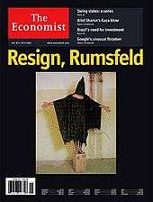 Several periodicals, including New York Times and The Boston Globe, called for Rumsfeld's resignation.[79] The cover of The Economist, which had backed President Bush in the 2000 election, carried a photo of the abuse with the words "Resign, Rumsfeld."