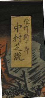 - ↑ OsakaPrints.com identifies Utaemon III's role as the "Devil General" Katō (Kishōkan) Masakiyo based on a print by Shigeharu