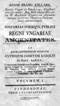 - ↑ The unadjusted spelling of the title: Historiae ivrisqve pvblici Regni Vngariae amoenitates. ("Amenities of the History and Constitutional Law of the Kingdom of Hungary.")